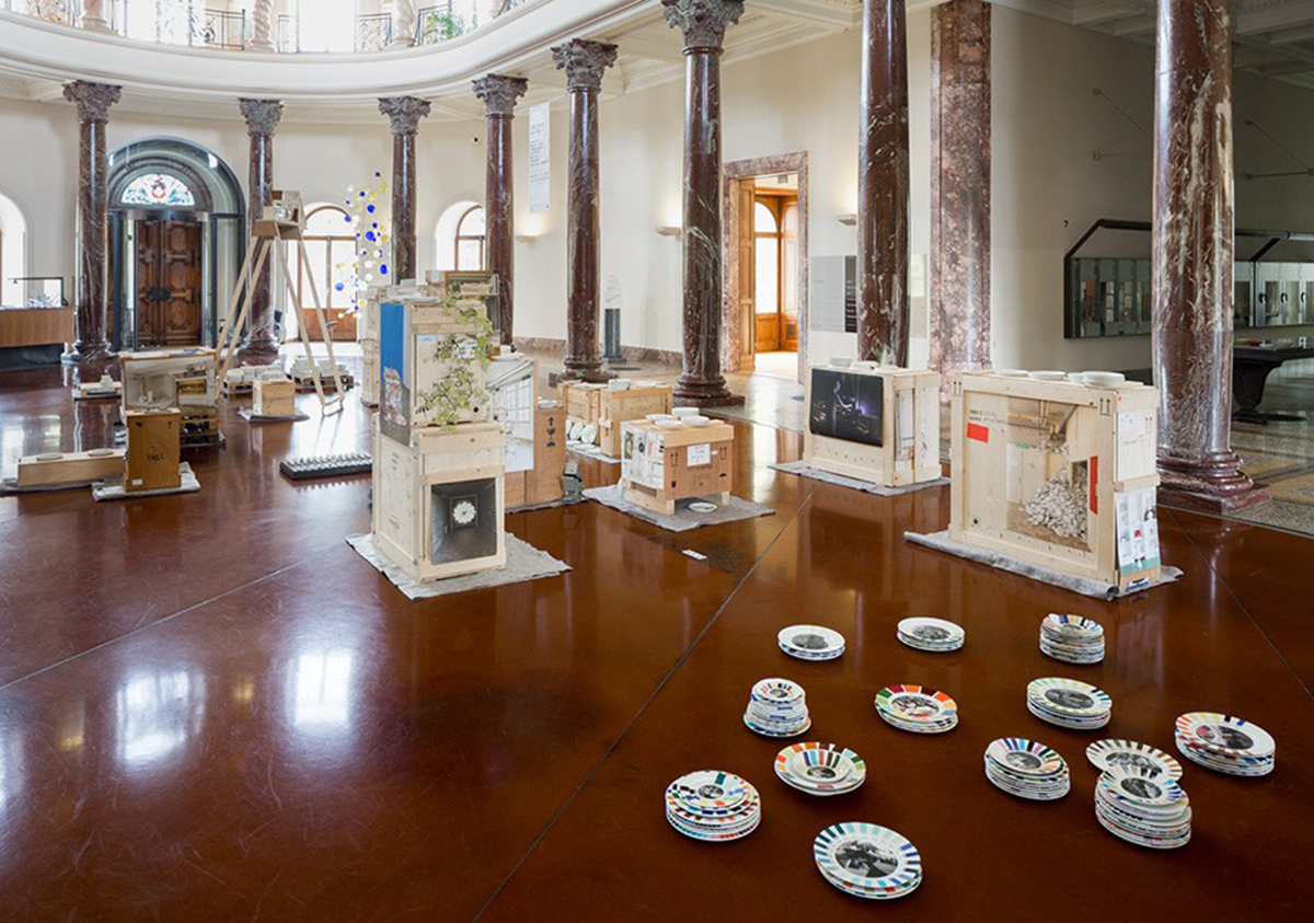 « Les étudiant-e-s de l’option Construction, Art et Espace de la HEAD - Genève ont investi l’ancienne fabrique de porcelaine de Langenthal au printemps 2018. Ils ont réfléchi aux enjeux liés à ce site industriel désormais désaffecté. Fasciné-e-s par l’histoire et les histoires qui entourent cette manufacture, les étudiant-e-s et leurs enseignant-e-s ont livré leurs expériences sous forme de propositions artistiques qui ont convoqué, à travers le mobilier et les matériaux de l’usine, les anecdotes et l’ambiance de ce patrimoine industriel unique en Suisse. Ce projet a donné lieu à une exposition in situ en avril 2018. Elle est rejouée dans le foyer du grand hall du Musée Ariana, quelques mois plus tard, en octobre. » (HEAD - Genève, 2018)