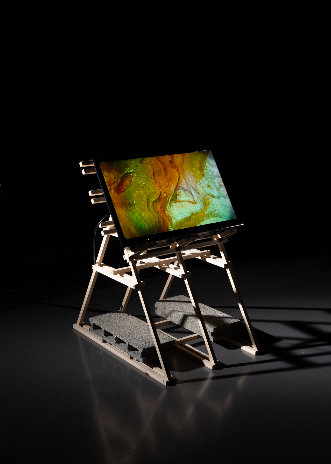 Les flux vidéo du diorama sont captés par une caméra élaborée pour reproduire le premier procédé qui permet la production stable d’images cinématographiques en couleur. Le système interne de cette triple-caméra est composé d’un prisme qui sépare l’image en trois versions colorimétriques : cyan, magenta et jaune. La superposition de ces trois couches colorées permet la conception d’un film en couleur qui adapte le procédé trichrome développé par Technicolor, dès 1928, aux normes du domaine numérique.
